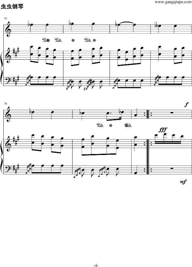 第四小段与第一小段完全相同,即重复这一乐段中富于东方色彩而又雄壮的进行曲。