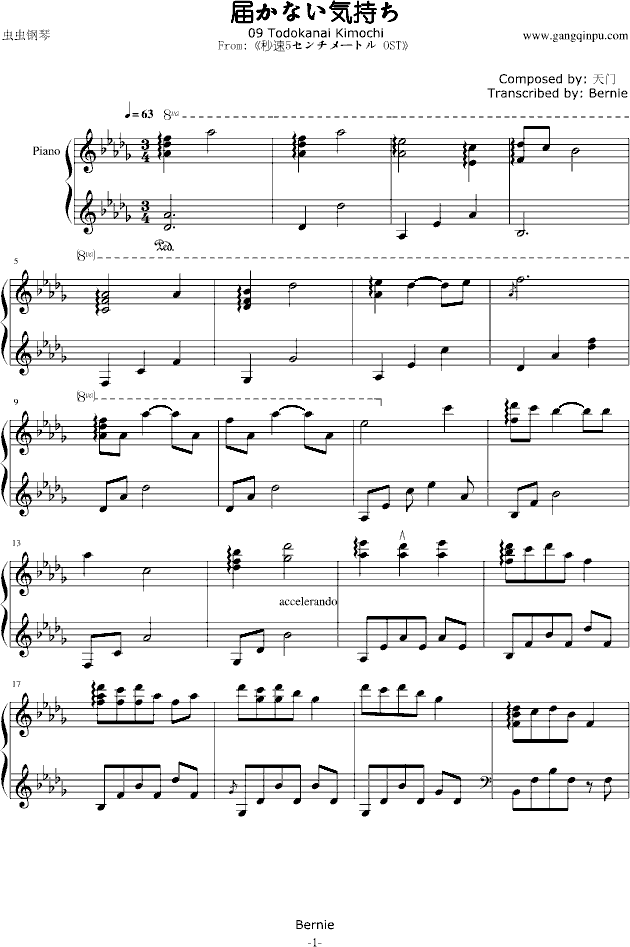 届かない気持ち(秒速五厘米OST)钢琴谱