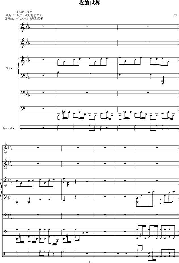 我的世界钢琴谱该歌谱演奏者为血腥残阳 ,歌曲名称为我的世界,歌谱类型为钢琴谱。