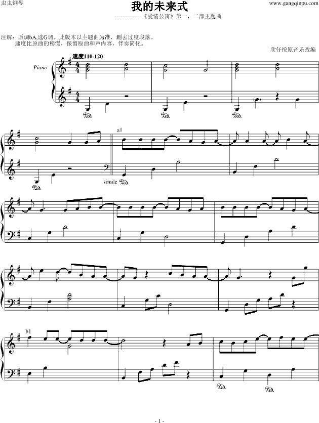 我的未来式《爱情公寓》主题曲钢琴谱该歌谱演奏者为郭采洁,歌曲名称为我的未来式,歌谱类型为钢琴谱。《我的未来式》是郭采洁演唱的一首歌曲,收录在郭采洁发行的专辑《隐形超人》中。
