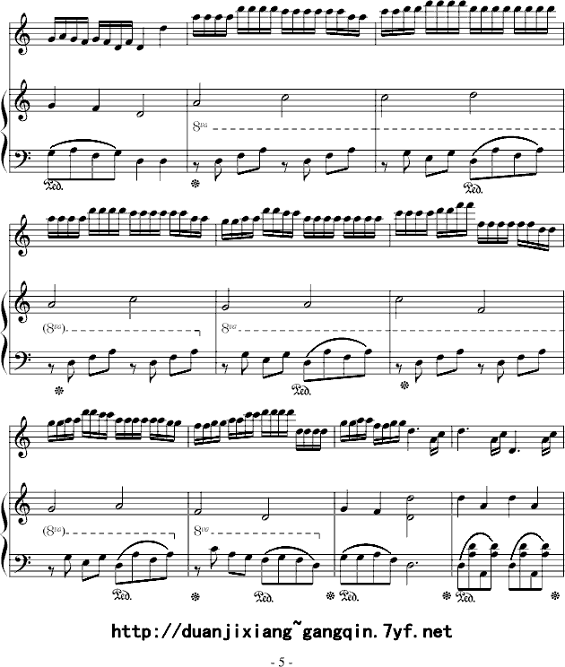:赛马(改编自二胡《赛马》) 钢琴谱该歌谱演奏者为黄海怀,歌曲名称为赛马,歌谱类型为。《赛马》是黄海怀创作的一首二胡独奏曲,系1964年第四届“上海之春”二胡独奏比赛中的新作品。乐曲以其磅礴的气势、热烈的气息、奔放的旋律而深受人们喜爱。无论是气宇轩昂的赛手,还是奔腾嘶鸣的骏马,都被二胡的旋律表现得惟妙惟肖。音乐在群马的嘶鸣声中展开,旋律粗犷奔放。由远到近清脆而富有弹性的跳弓,强弱分明的颤音,描绘了蒙古族牧民欢庆赛马盛况的情形。二胡快弓、跳弓技巧的运用,拨弦、颤音技巧的运用,在我们面前展现了一幅生动热烈的赛马场面赛马(杨荫伴奏谱、张心抚配伴奏版)胡琴乐谱