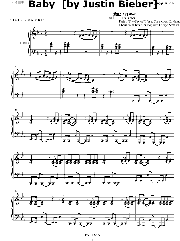 Baby 【Justin Bieber】钢琴谱