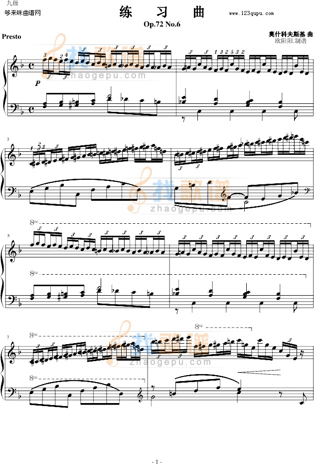 练习曲Op.72 No.6-莫什科夫斯基钢琴谱该歌谱演奏者为未知,歌曲名称为练习曲Op.72 No.6,歌谱类型为钢琴谱。练习曲Op.72 No.6是莫什科夫斯基创作的练习曲之一。