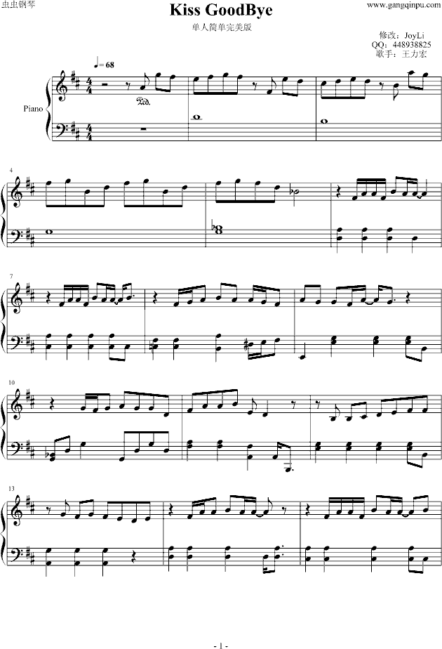 kiss goodbye钢琴谱