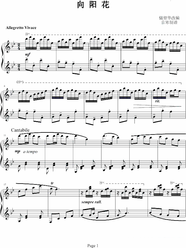 钢琴曲谱 京寒制谱:向阳花