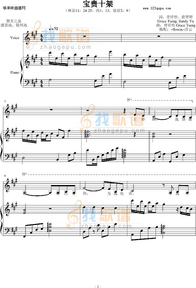 宝贵十架-赞美之泉钢琴谱该歌谱演奏者为未知,歌曲名称为宝贵十架,歌谱类型为钢琴谱。宝贵十架是由赞美之泉演唱的一首基督教赞美诗歌。