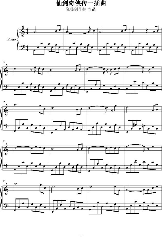 仙剑奇侠传一插曲钢琴谱