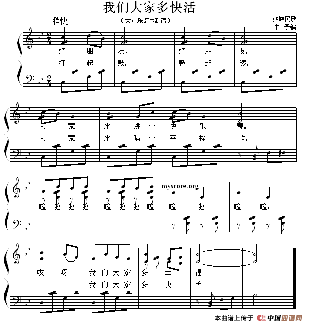 我们大家多快活 (藏族民歌、少儿歌曲钢琴弹唱谱)
