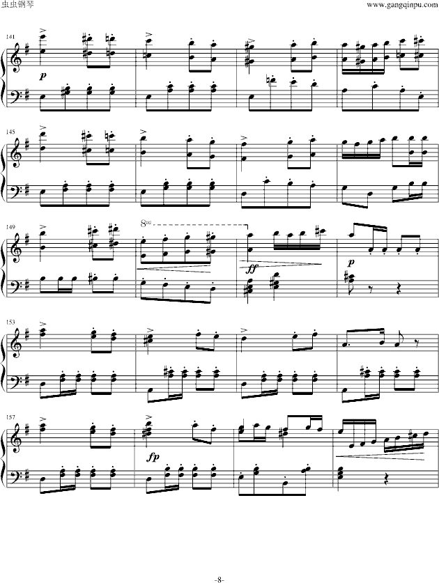 :军队进行曲-舞蝶版钢琴谱该歌谱演奏者为奥地利皇家卫队 ,歌曲名称为军队进行曲,歌谱类型为。《军队进行曲》作于1822年前后,是钢琴联弹曲《军队进行曲》中的第一首。用复三部曲式写成,描写了士兵行进时的雄姿和人们在街头欢迎士兵的场面。舒伯特所作的许多钢琴联弹曲中,包括三个进行曲集,即《三首英雄进行曲》,《二首性格进行曲》和《军队进行曲》,全都是深受喜爱的家庭音乐。其中以《军队进行曲》最为著名,尤其是这首第一号作品更为流行人民军队进行曲简谱