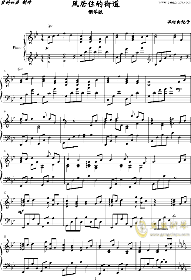 相关歌谱风居住的街道完美原版钢琴谱