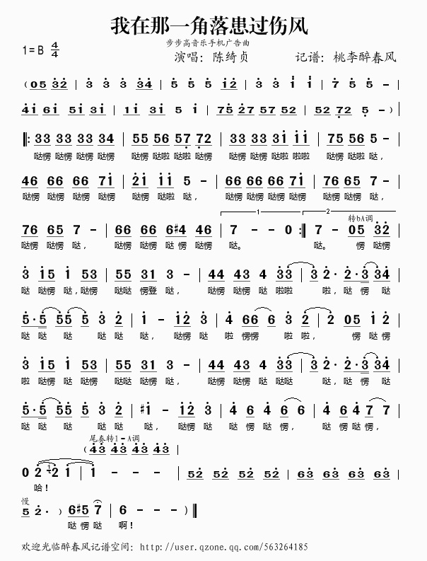 我在那一角落患过伤风乐谱钢琴谱该歌谱演奏者为陈绮贞