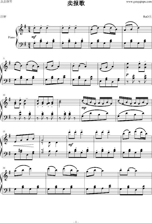 卖报歌钢琴谱