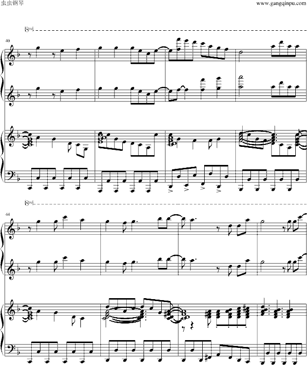 【】火影忍者 萤之光 四手联弹钢琴谱