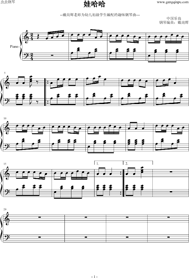 娃哈哈 幼儿钢琴曲最好版钢琴谱该歌谱演奏者为戴尚辉