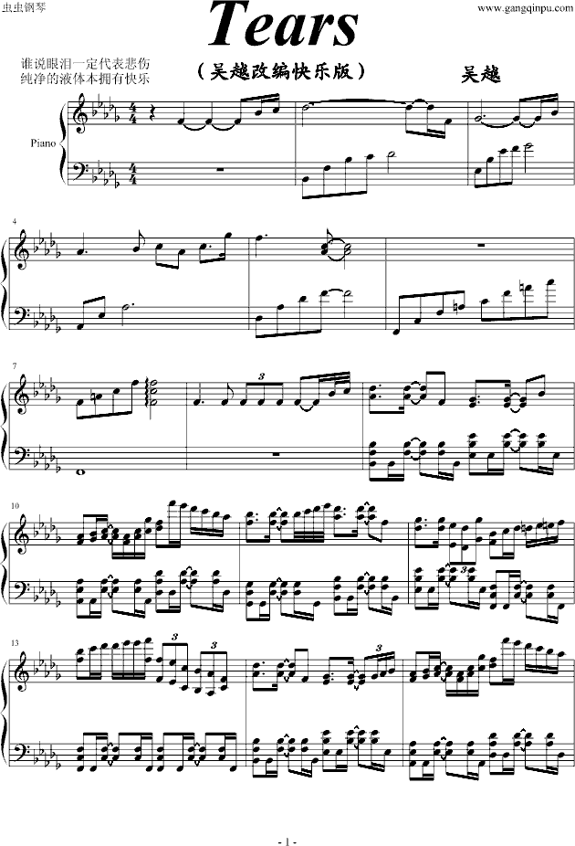 《Tears 眼泪钢琴曲》(綾楓版)钢琴谱