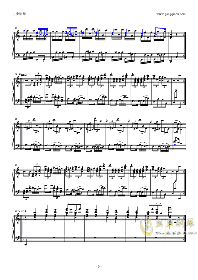 需要说明的是,这首乐谱有很多不同的版本,大体上是一样的,但个别的装饰音或有或无、或写法不同,反复记号也有所不同。 此曲为9级、难度与普通的小星星有天壤之别。