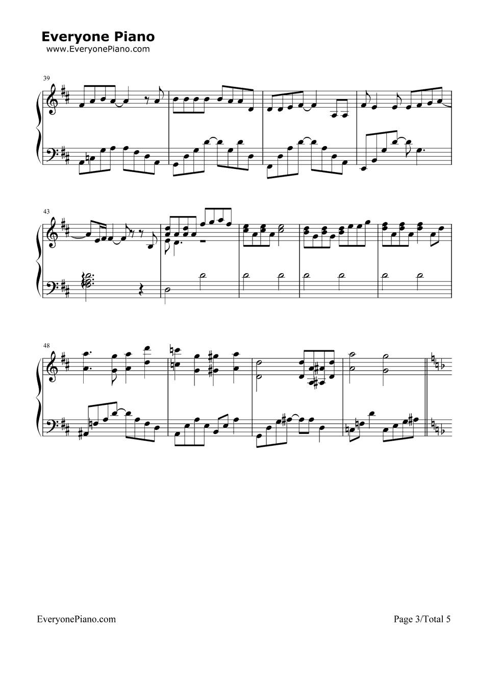 《奔跑》(羽泉演唱) 钢琴谱