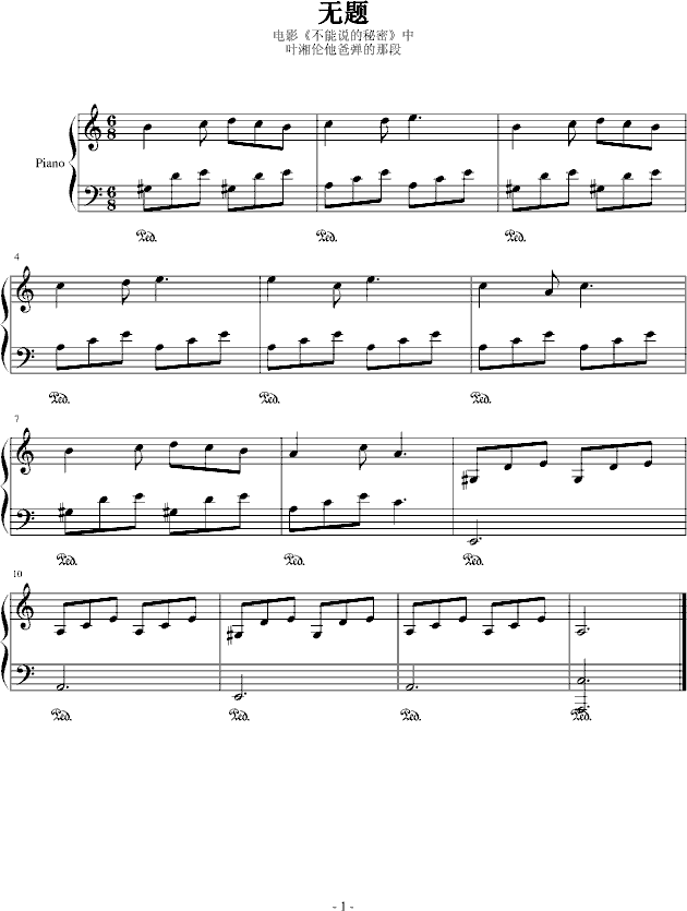 无题-不能说的秘密钢琴谱该歌谱演奏者为周杰伦,歌曲名称为不能说的秘密,歌谱类型为钢琴谱。《不能说的秘密》是周杰伦自编自导的电影《不能说的秘密》的同名主题曲,由方文山作词,周杰伦作曲演唱,林迈可编曲[1] 。