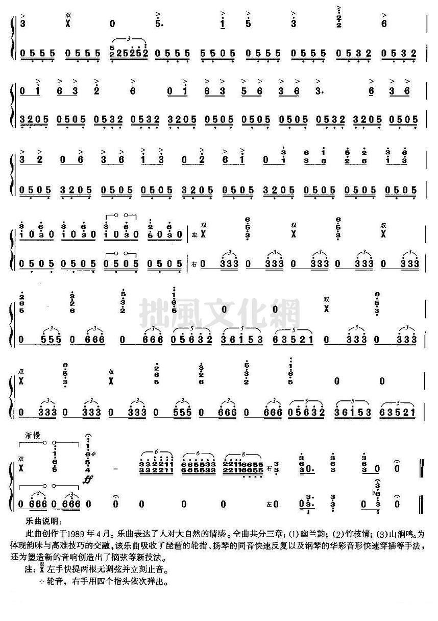 古筝古琴乐谱曲谱 情景三章 幽兰韵