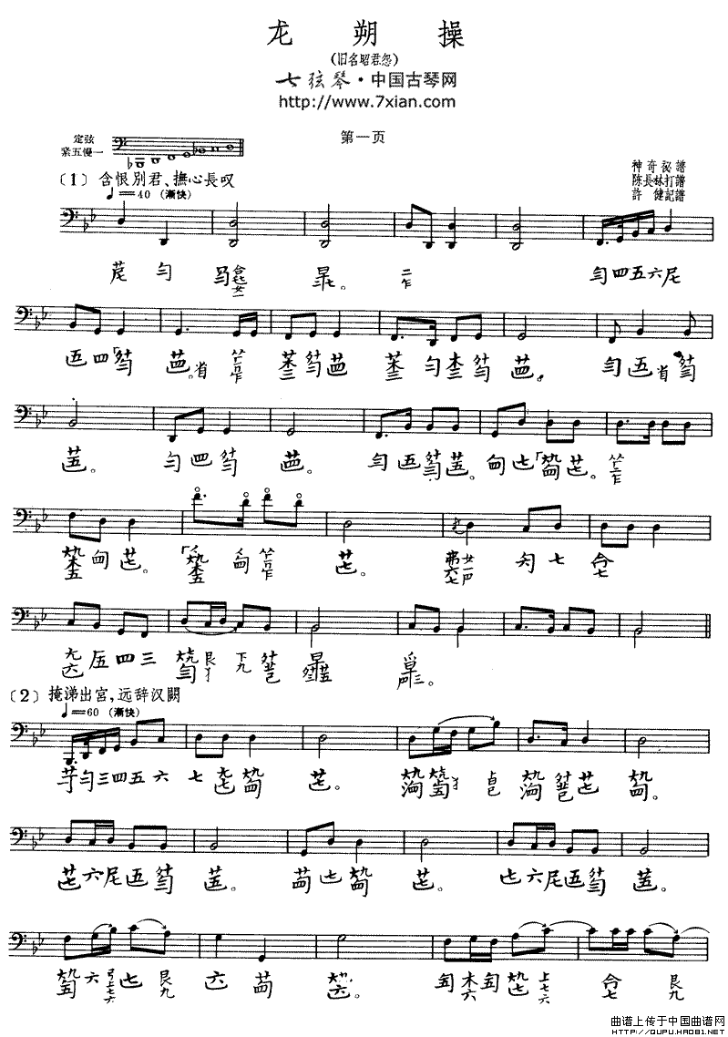 龙朔操(古琴谱、五线谱+减字谱)