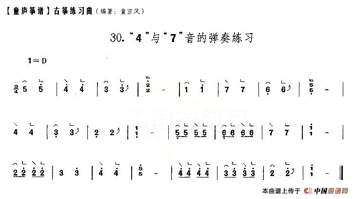 童庐筝谱:30.“4”与“7”音的弹奏练习
