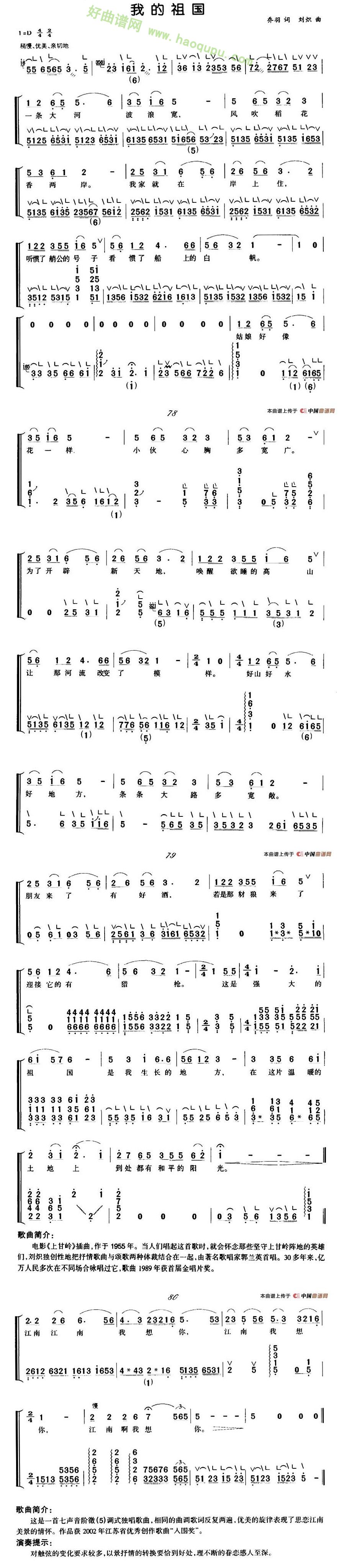 二胡乐谱曲谱 我的祖国(二胡二重奏 影片《上甘岭