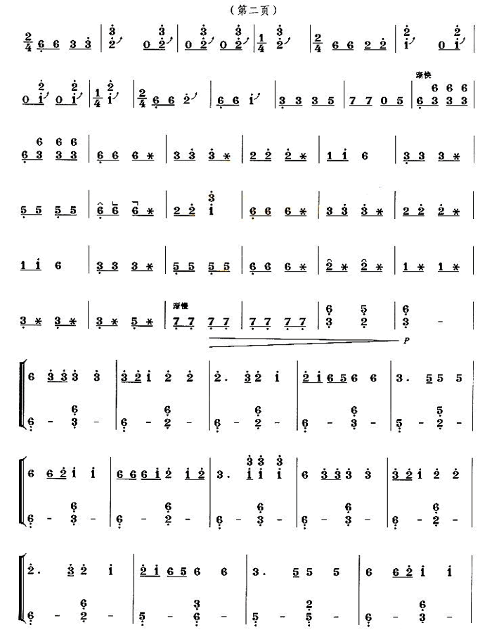 二胡乐谱曲谱 我的祖国(二胡二重奏 影片《上甘岭