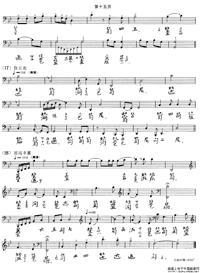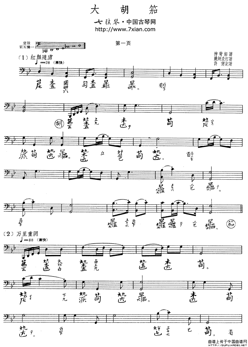 古筝古琴乐谱曲谱 但愿人长久(梁弘志曲 古琴曲)