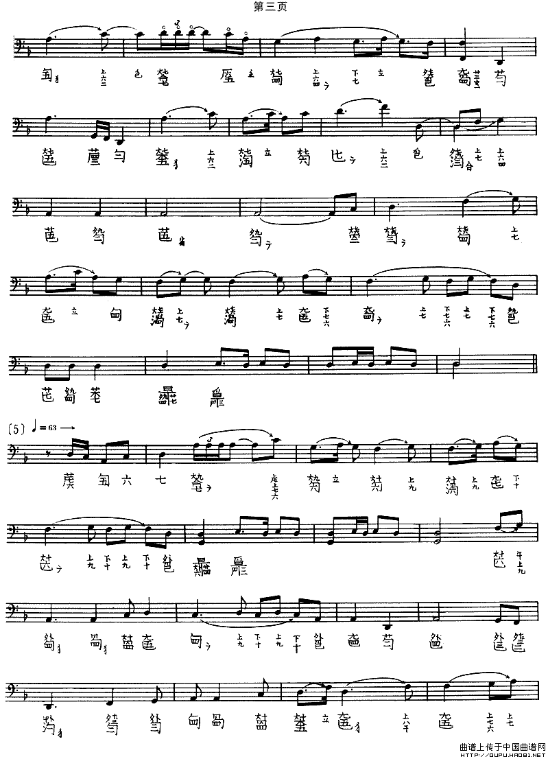 二胡乐谱曲谱 松花江上(张寒晖曲 王莉莉订谱)