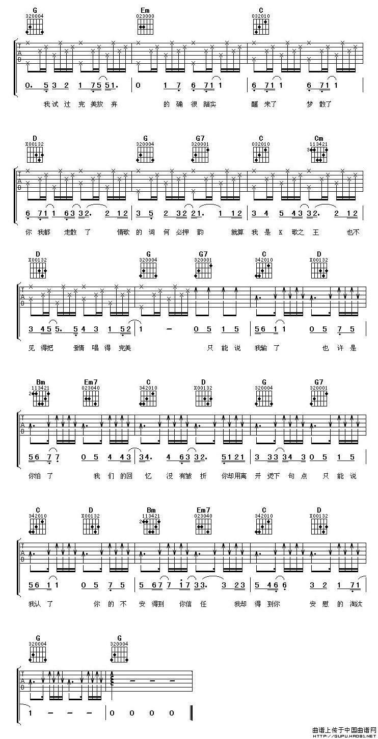 吉他谱乐谱 与你同在(陈楚生词曲)