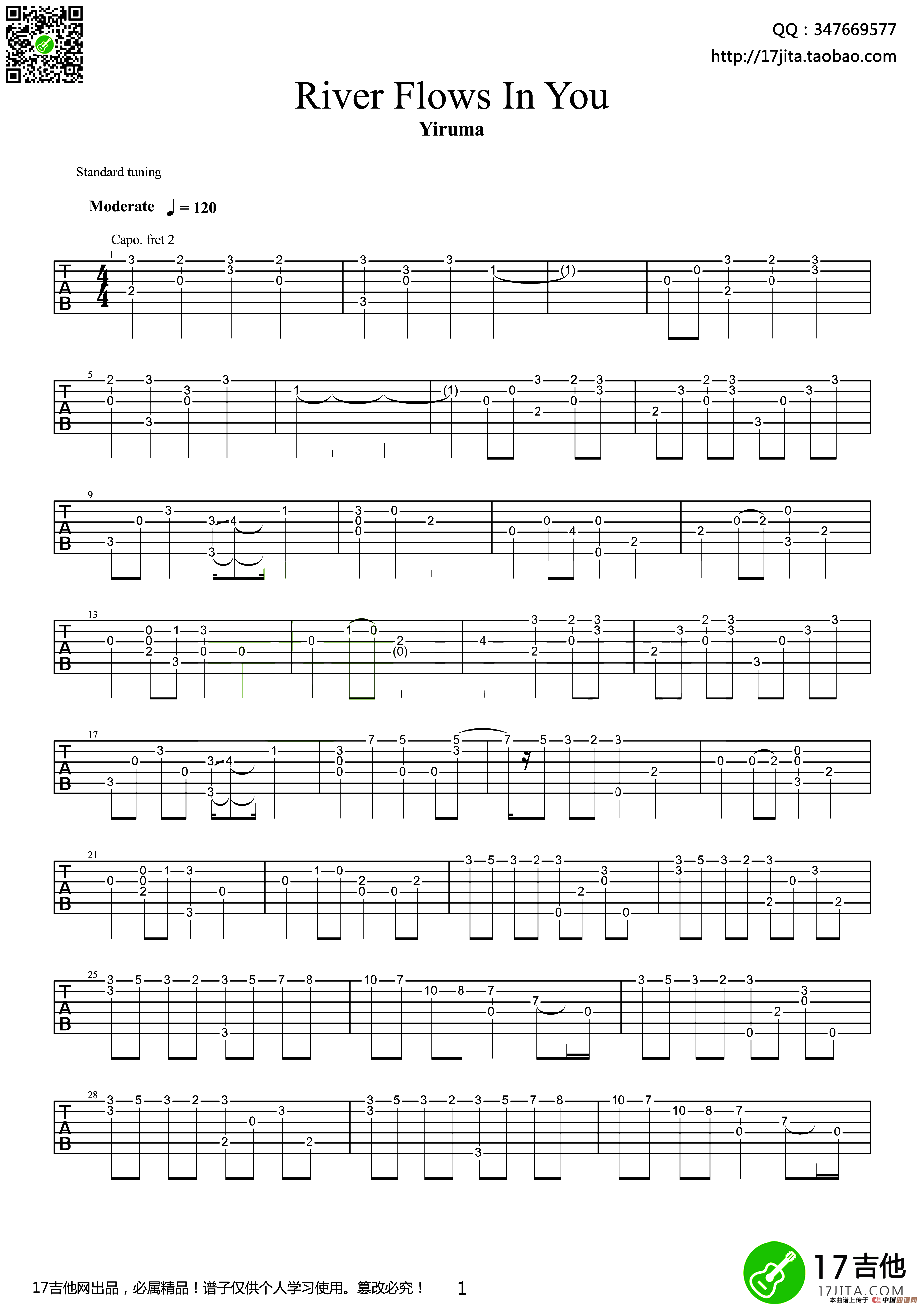 吉他谱乐谱 TA(不是花火呀水火之中是 C调弹唱谱)
