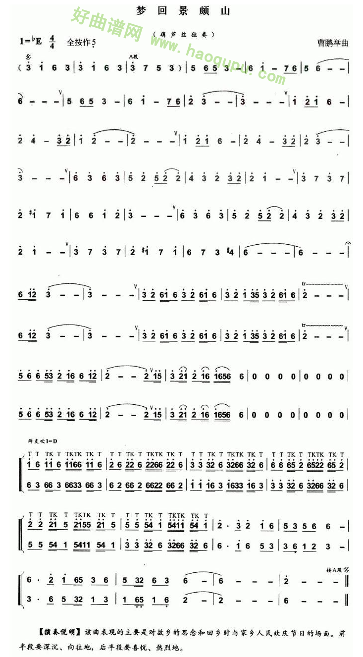 葫芦丝乐谱曲谱 映山红(傅庚辰曲)