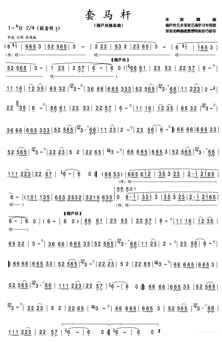 葫芦丝乐谱曲谱 套马杆(葫芦丝独奏曲 李凯稠曲)
