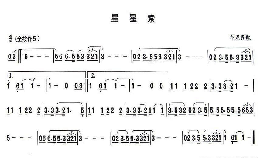 葫芦丝乐谱曲谱 星星索(印尼民歌)