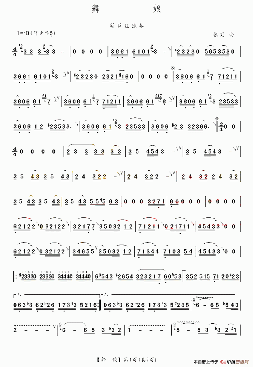 葫芦丝乐谱曲谱 竹情(何维青曲)