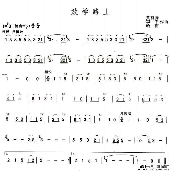 二胡乐谱曲谱 我的祖国(二胡二重奏 影片《上甘岭