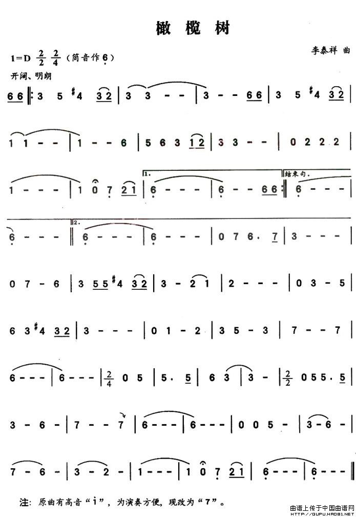 葫芦丝乐谱曲谱 军港之夜(五线谱 苏小朋演唱)