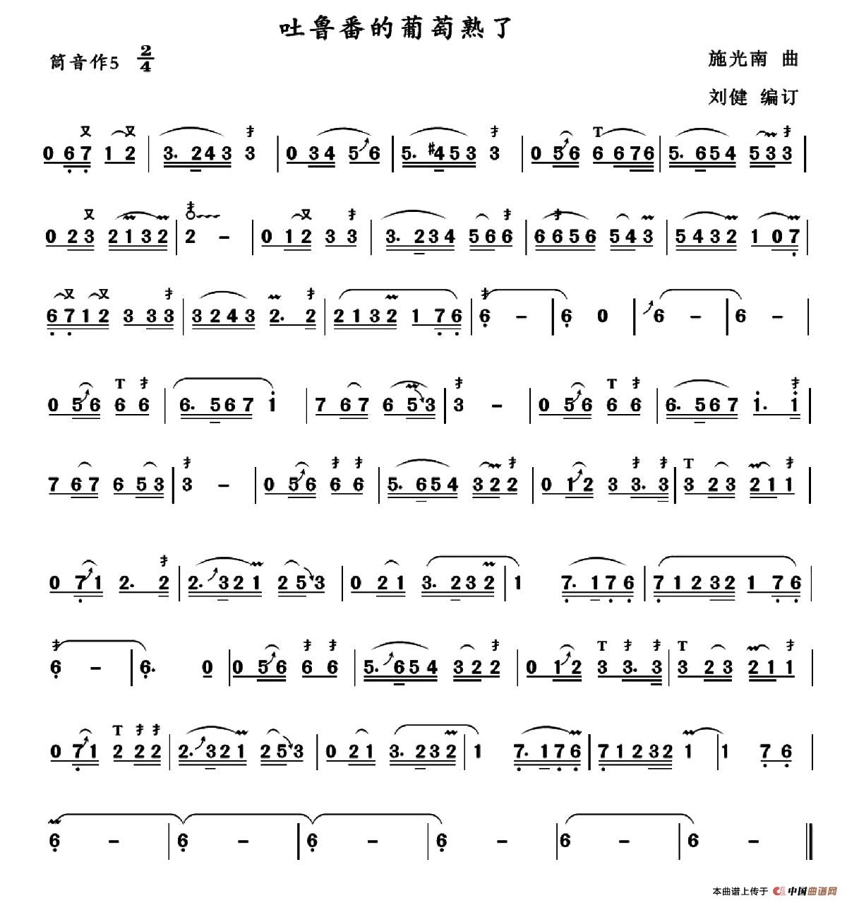 《高山青》葫芦丝曲谱
