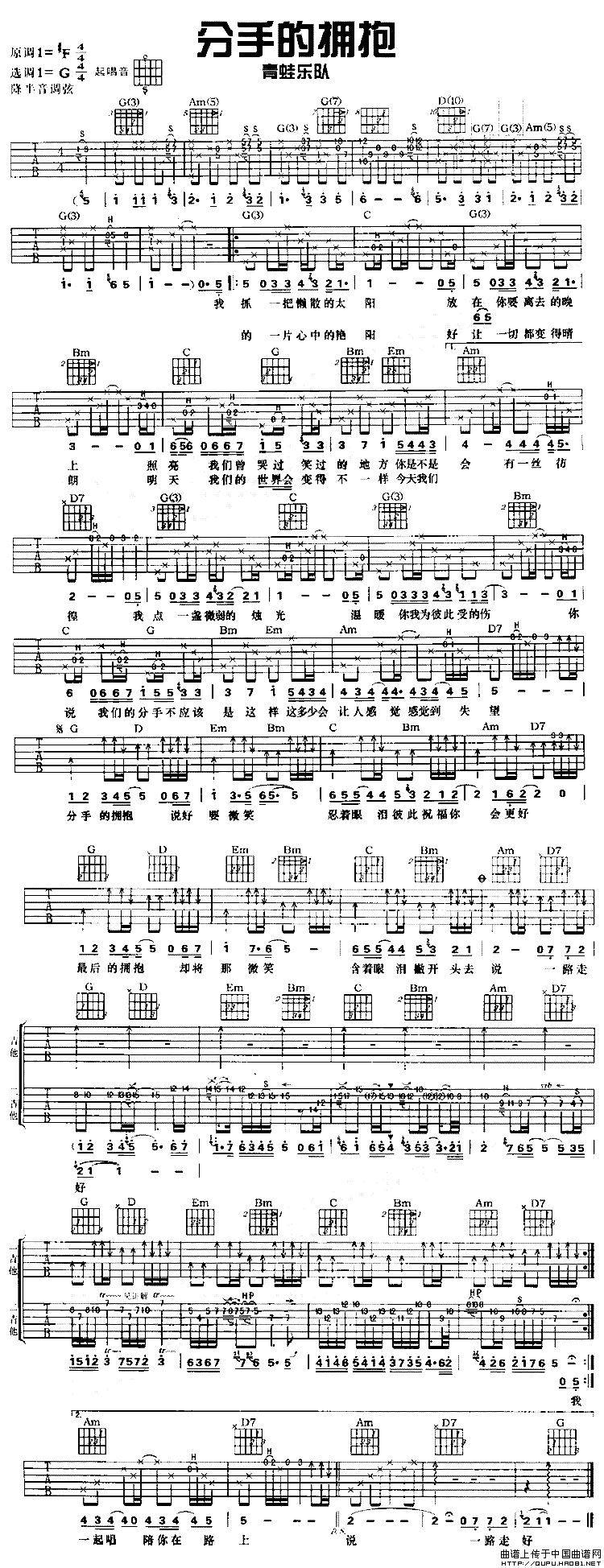 吉他谱乐谱 笔记(周笔畅演唱 G调指法编配)