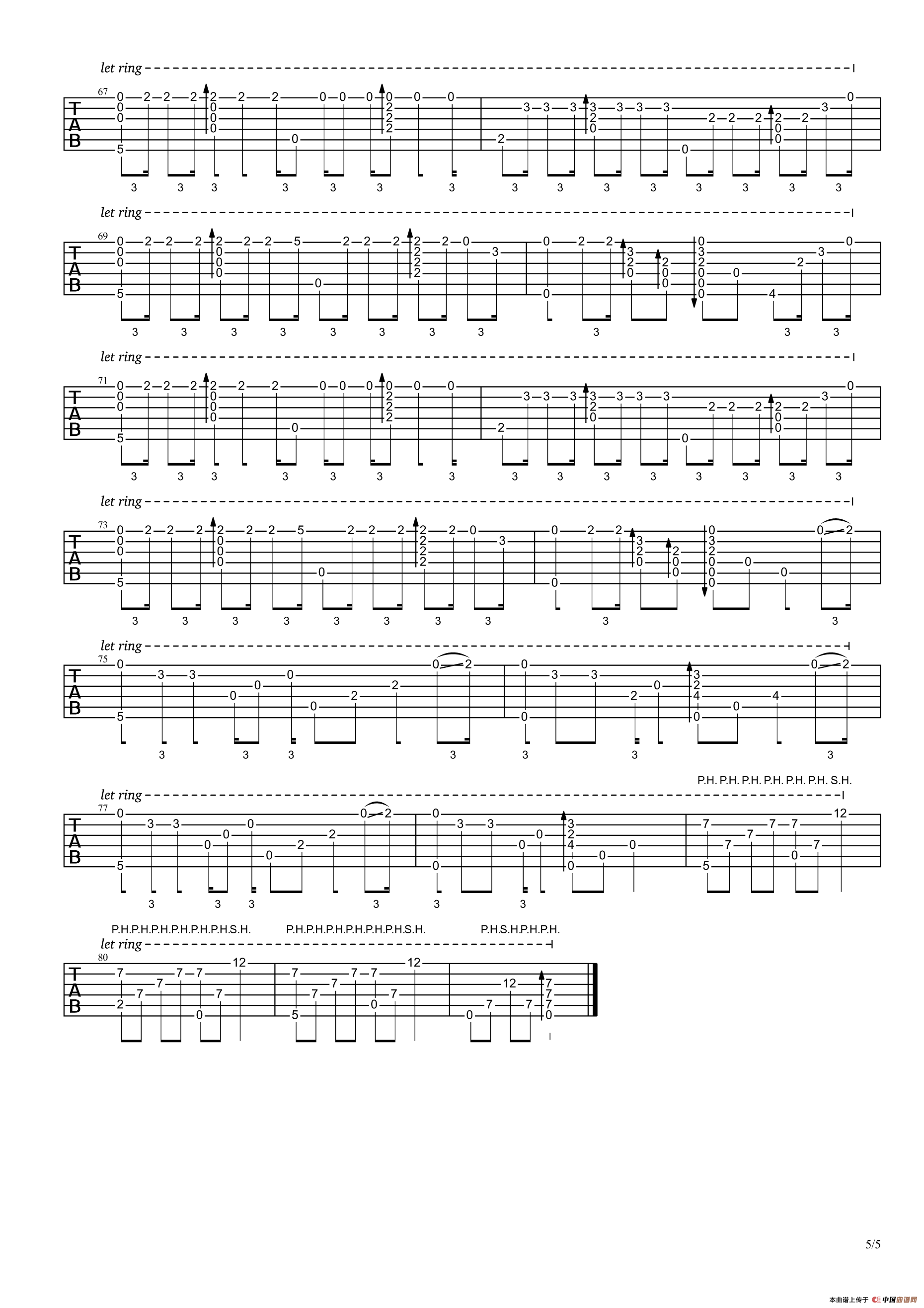 吉他谱乐谱 直到世界终结(日本动画《灌篮高手》主