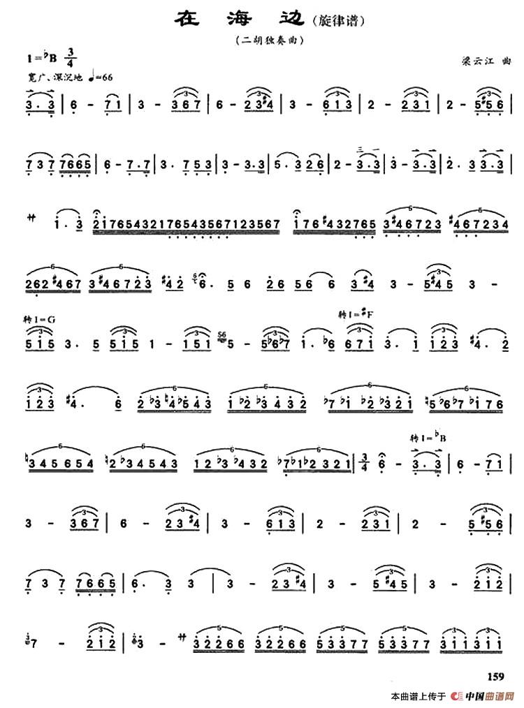 二胡乐谱曲谱 松花江上(张寒晖曲 王莉莉订谱)