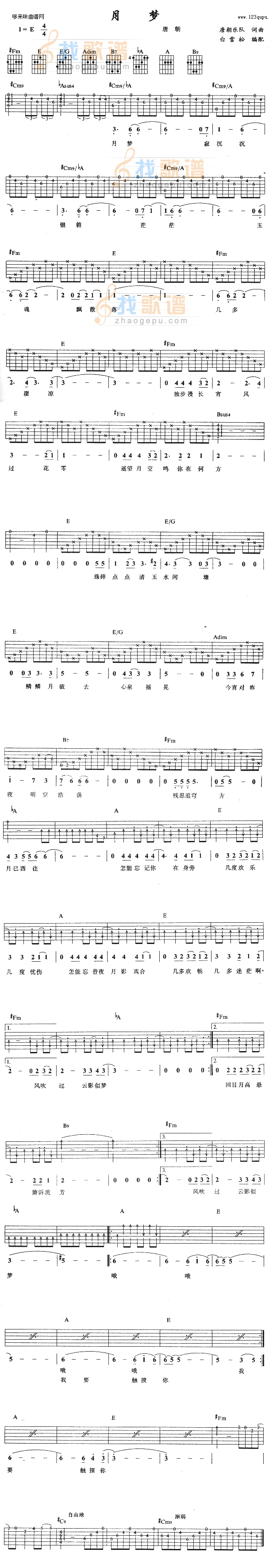 月梦 (唐朝乐队)吉他谱
