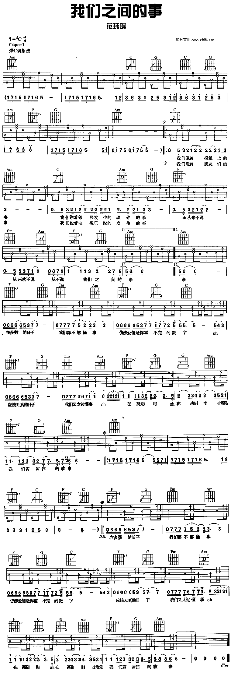 我们之间的事.吉他谱该歌谱演奏者为范玮琪