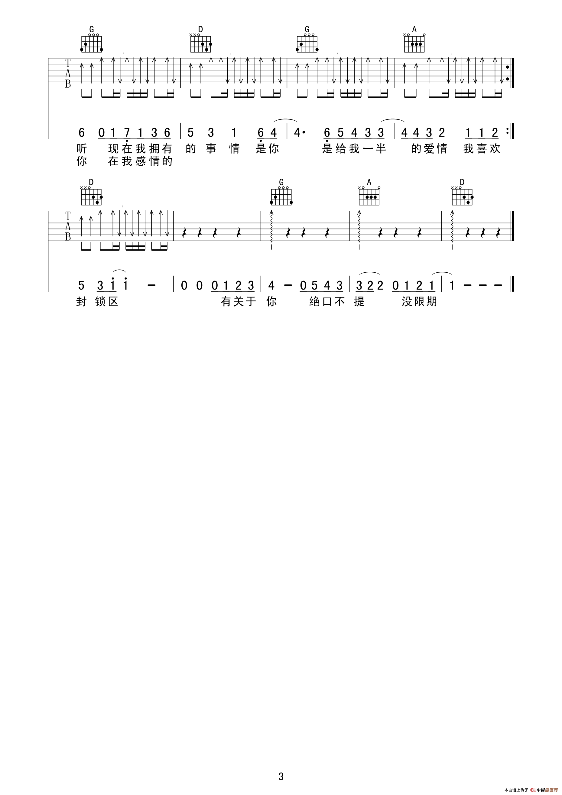 吉他谱乐谱 不得不爱(潘玮柏/弦子演唱 G调弹唱谱)