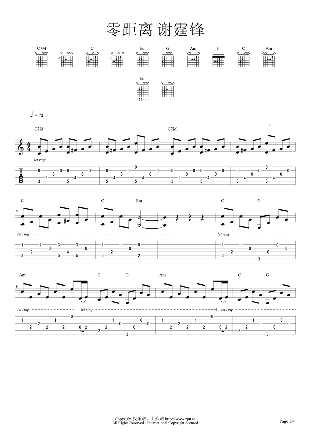 零距离吉他谱该歌谱演奏者为谢霆锋