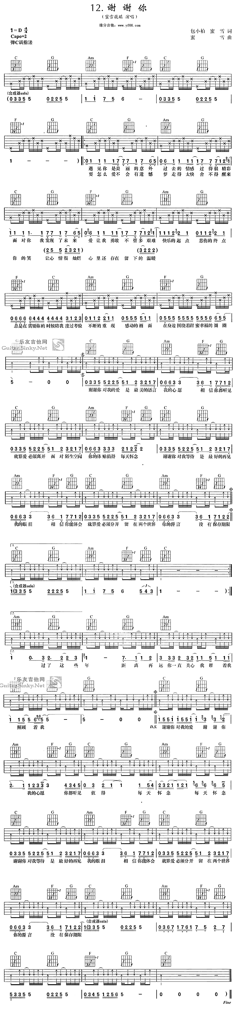 谢谢你吉他谱