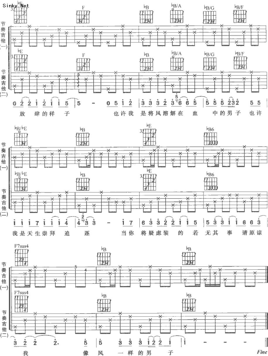 风一样的男子123吉他谱该歌谱演奏者为陈晓东