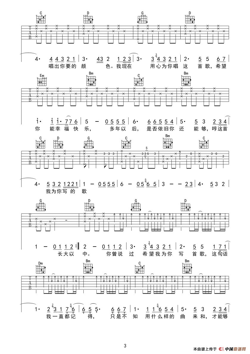 为你写首歌吉他谱该歌谱演奏者为横五不香