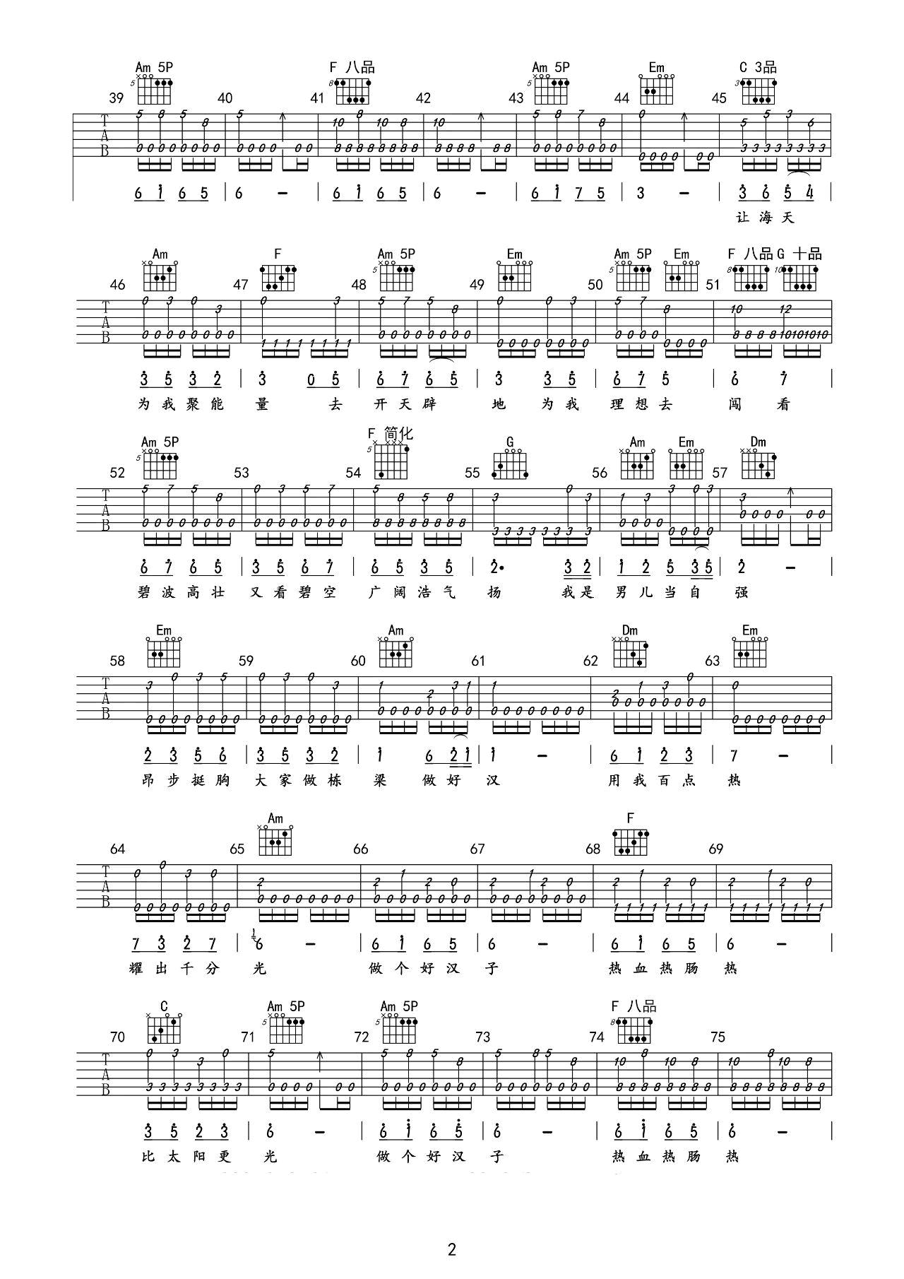 男儿当自强 男儿当自强吉他谱-吉他曲谱 曲谱 歌谱下载