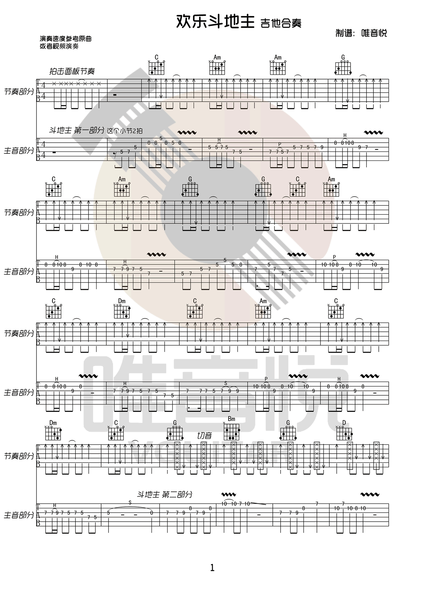 吉他谱乐谱 欢乐斗地主指弹谱(双吉他合奏版本)